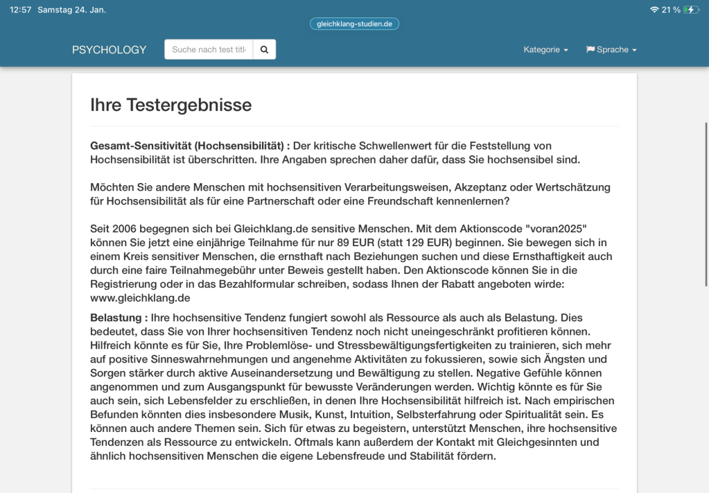 Selbsttests Hochsibilität